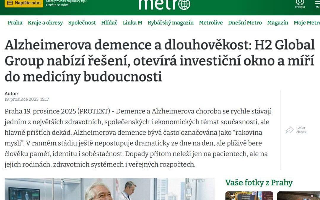 Klíčovým krokem je přechod od prevence k medicíně založené na datech. H2 Global Group prostřednictvím své MedTech divize H2 Medical Technologies oznámila, že Státní ústav pro kontrolu léčiv (SÚKL) schválil první klinickou studii v České republice, která má hodnotit bezpečnost inhalace molekulárního vodíku u pacientů s mírnou kognitivní poruchou (MCI), stavu, který je často považován za předstupeň Alzheimerovy demence. Pro účely této studie bude použit první funkční prototyp přístroje generující molekulární vodík, z dílny společnosti H2 Medical Technologies.